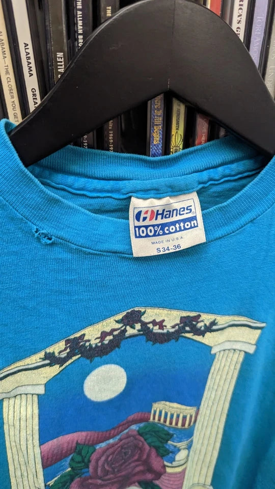 All Grateful Dead shirts listed are from an original owner collection who followed the Dead on tour in the mid to late 80s. All shirts were occasionally worn until the date we acquired them - I'll do my best to include any major flaws, but please note, there may be some minor spots of wear not pictured.