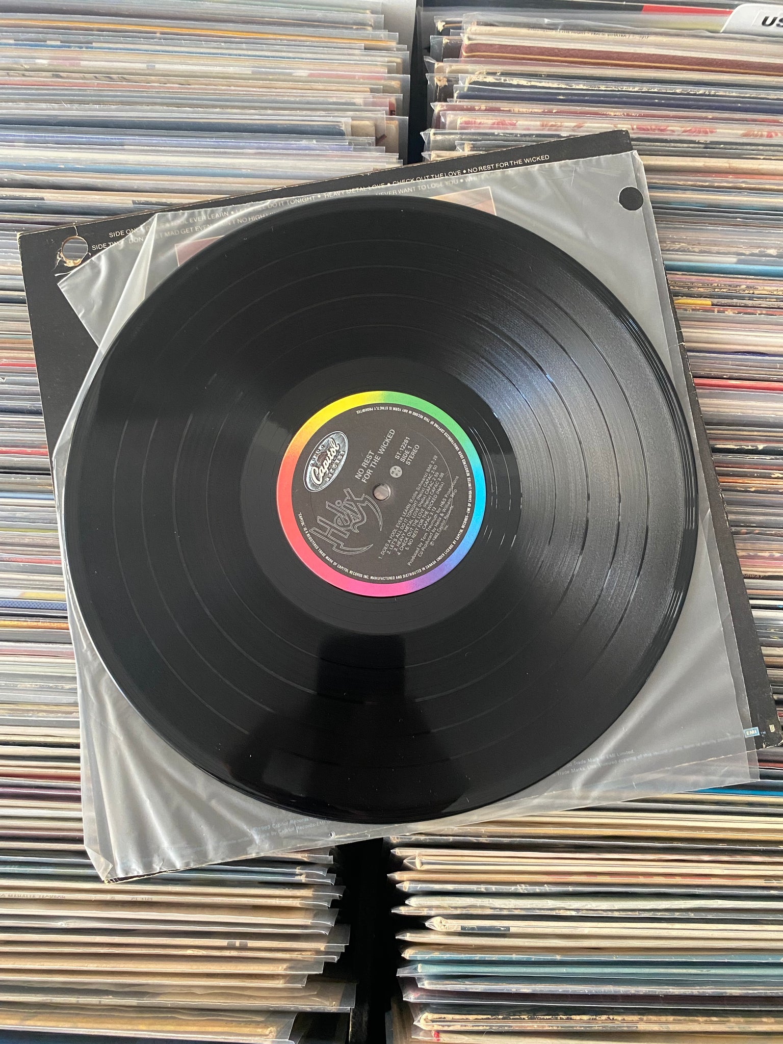 Some light creasing and a promo punch on sleeve. Vinyl is super clean!